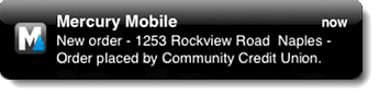 When you receive a new order, your mobile device displays a push notification. Tap the notification to open Mercury Mobile and view the order.